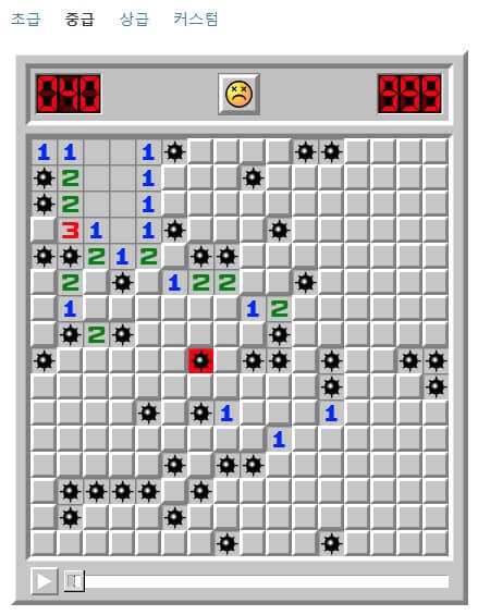 매질을 클릭해서 단계를 선택하여 지뢰찾기 게임을 바로 진행할 수 있습니다.
