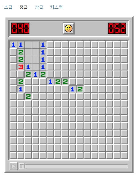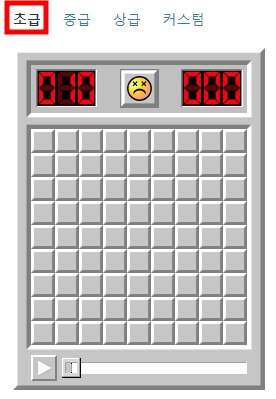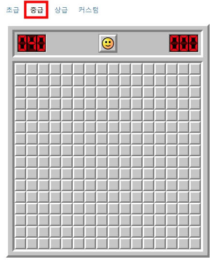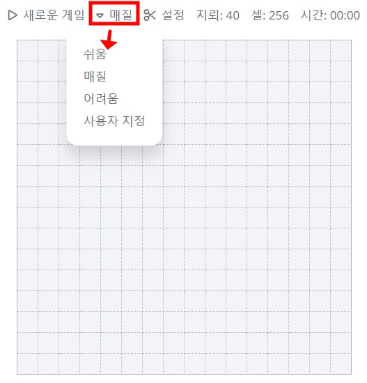 매질을 클릭해서 단계를 선택하여 지뢰찾기 게임을 바로 진행할 수 있습니다.